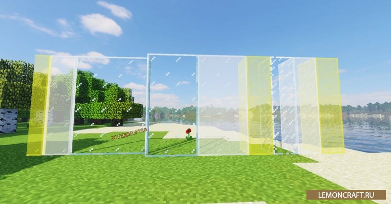 Мод на единое стекло Connected Glass добавляет в игру новые виды стекол, которые будут иметь одинаковую структуру. Если такие блоки стекла соединить, ваше строение получит общую поверхность, а не соединенную из разных блоков. Всего будет добавлено три вида новых блоков, которые будут отличаться количеством "царапин" на поверхности.
